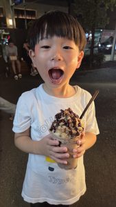 1日目に売り切れで買えなかったバナナパフェを、2日目の朝イチで買いに来てくれた小さなお客様👦🍌