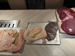 後半の実技パートは、塊肉や、店舗では取り扱いのないホルモンを実際に見ることから始まりました