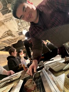 厚切りステーキを見守る、塚脇さんと柴田さん