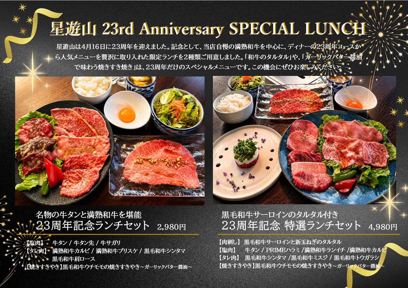 ディナータイムには23周年コースもあり、料理長の林くんが、試行錯誤で何度も試食を重ねて完成させたスペシャルメニューです。こちらも是非お楽しみください!