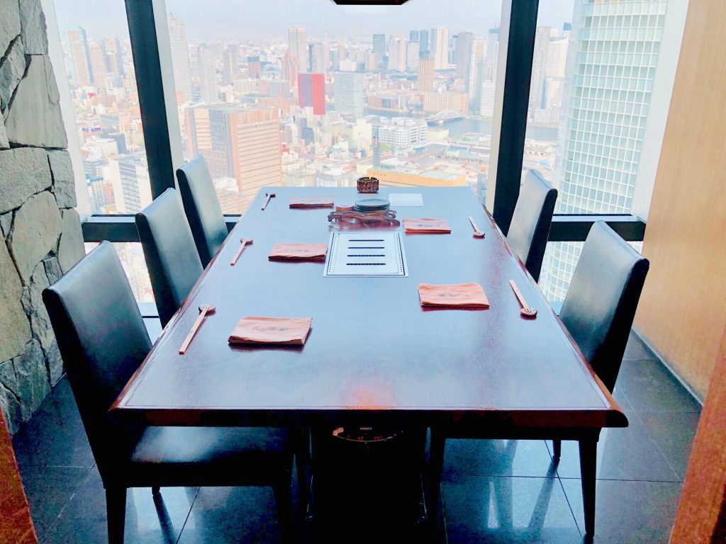 地上215mの景色を眺めながら焼肉を楽しめます